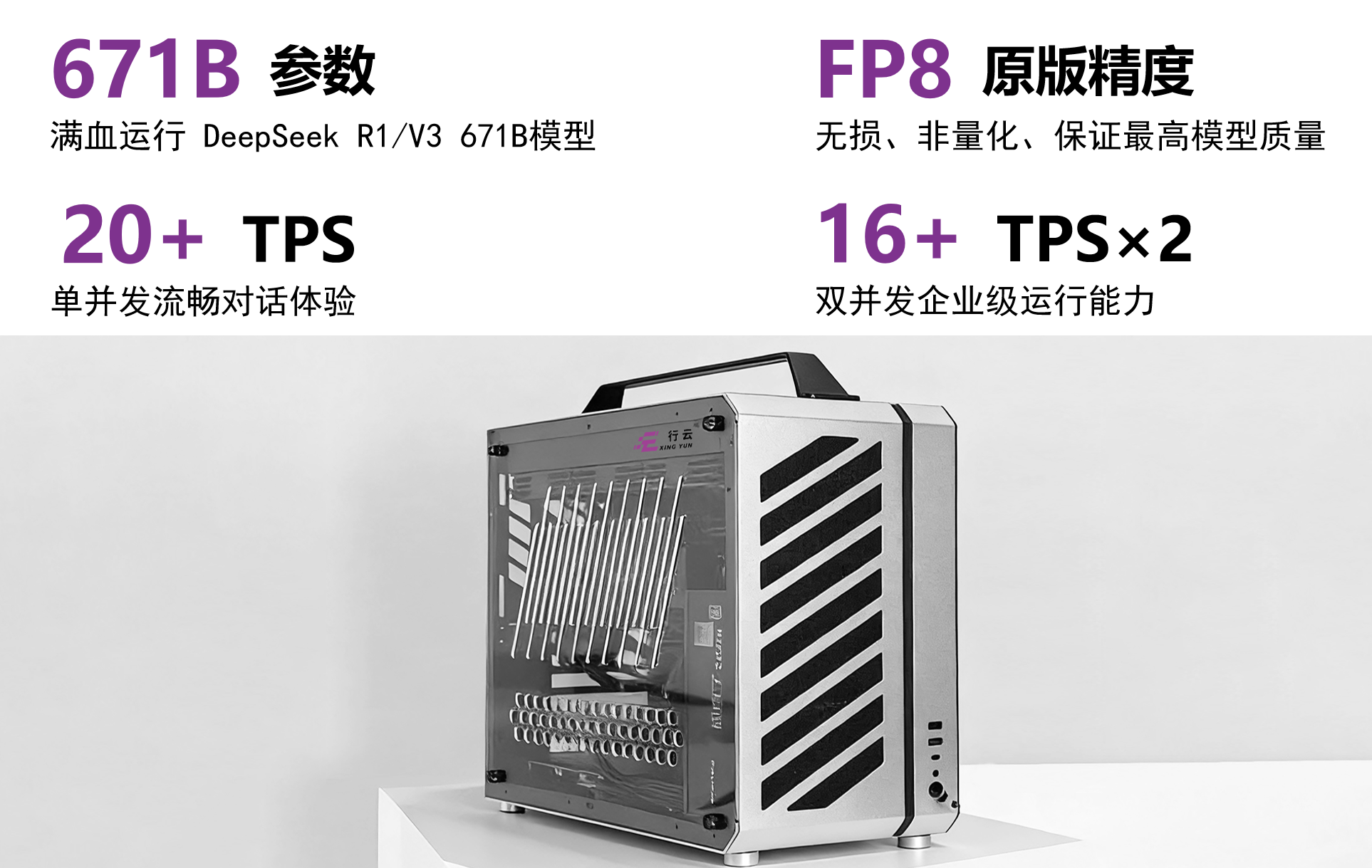 这种惊艳表现源于褐蚁独特的软硬件一体化架构。在紧凑机身内,褐蚁不仅实现了20+ TPS解码速度与1200 TPS预填充吞吐量的性能突破,更支持原版无损精度的万亿级参数模型运行。通过双路CPU与GPU协同的独家优化及PD分离技术,行云有效突破了传统硬件的带宽瓶颈,将前沿的大模型性能转化为触手可及的桌面标准。